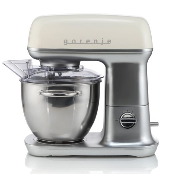 Kuchynský robot Gorenje MMC1000RL s retro dizajnom, výkonom motoru 1000 W a siedmimi rýchlosťami v kuchyni nadšencov vintage štýlu jednoducho nesmie chýbať. Je nielen krásny, ale aj všestranný a postará sa o to, aby sa všetko vyšľahalo, vymiesilo a uhnietlo do dokonalosti takmer samo. Robot využíva planetárny systém miešania, pri ktorom sa miešacie zariadenie otáča okolo svojej osi, zatiaľ čo miešacia hlava sa otáča v opačnom smere. Všetky prísady sa preto dokonale a rovnomerne spoja a prevzdušnia, cesto bude mäkké a vláčne, krém nadýchaný. Miešacia misa z nehrdzavejúcej ocele s objemom 4,5 l zvládne aj veľké množstvo surovín, priehľadné veko uľahčuje kontrolu, zabraňuje rozstrekovaniu obsahu a umožňuje plynulé pridávanie prísad. Spotrebič sa dodáva s hákom na cesto, šľahacou metlou, plochou metlou a flexi metlou. Cena vo farbe šampanského (aj v čiernej) je 275 EUR.